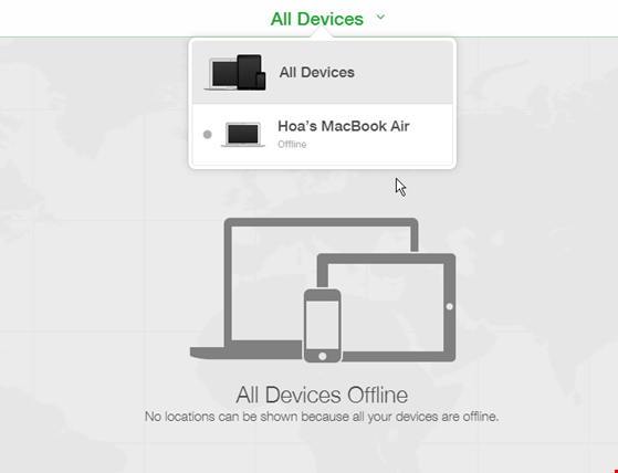 - Bước 2: Nhấn vào nút All Devices để hiển thị toàn bộ danh sách các thiết bị, từ đó bạn có thể chọn iPhone, iPad hoặc iPod Touch có chứa Passcode cần xóa.