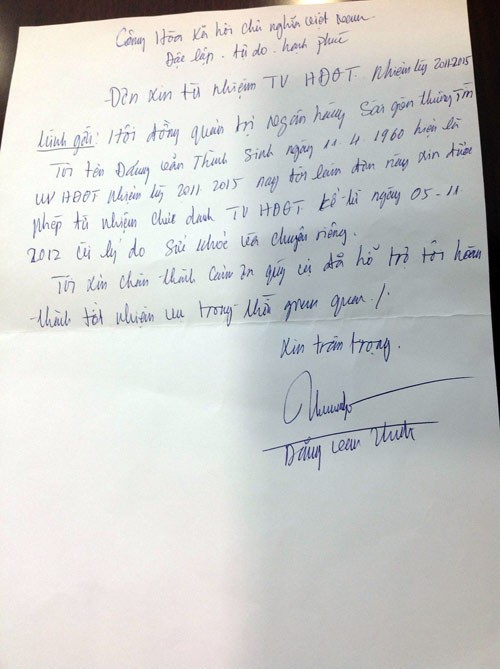 “Triều đại” 19 năm của Đặng gia tại Sacombank khép lại bằng bức thư từ nhiệm dài nửa trang A4, do đích thân Chủ tịch Thành tự thảo vào thượng tuần tháng 11/2012.