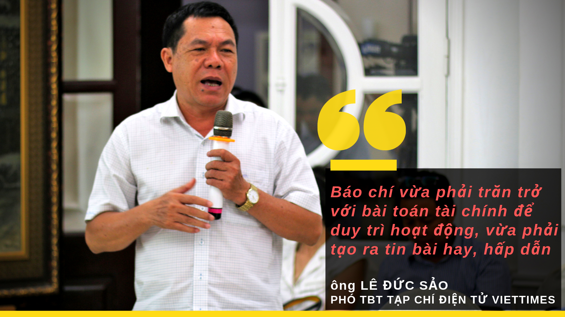 Với yếu tố thứ ba là doanh thu - đây là một “nguồn sống” để báo chí có thể tồn tại. Nói về vấn đề này, ông Lê Đức Sảo, Phó Chủ tịch Hội Truyền thông số Việt Nam, Phó Tổng biên tập Tạp chí Điện tử VietTimes cho biết, một trong những thách thức của các đơn vị báo chí là phải hoạt động như một doanh nghiệp, phải tự chủ tài chính. Họ phải trăn trở với bài toán làm thế nào để có đủ kinh phí nhằm duy trì hoạt động cho tờ báo, đồng thời phải tạo ra các tác phẩm báo chí hay, hấp dẫn, nhanh và chính xác để thu hút bạn đọc. Không có nhiều tờ báo ở Việt Nam hiện nay hoạt động có lãi.