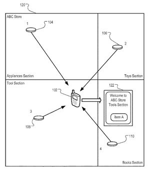 Một bằng sáng chế khác cho thấy một giải pháp thú vị để điều hướng người dùng trong một không gian bên trong nhà, chẳng hạn như cửa hàng của Apple. Một mạng lưới các nút không dây sẽ được cài đặt trong cửa hàng. Khi điện thoại của người dùng di chuyển vào trong phạm vi các nút, hệ thống sẽ phát hiện ra chiếc điện thoại. Nó có thể ping riêng điện thoại và xác định chính xác vị trí người dùng bên trong cửa hàng. Sau đó, hệ thống sẽ dẫn đường cho người dùng đến đúng những khu vực mà họ muốn đến, giả định là thông qua ứng dụng dành riêng cho cửa hàng hoặc là ứng dụng nâng cấp từ Apple Map.