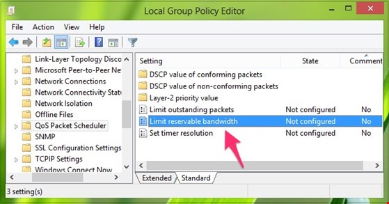 Mặc định, máy tính sẽ giữ khoảng 20-30% băng thông để dành cho hệ thống. Tuy nhiên, nếu muốn sử dụng hết công suất, bạn có thể thực hiện theo hướng dẫn sau đây.
