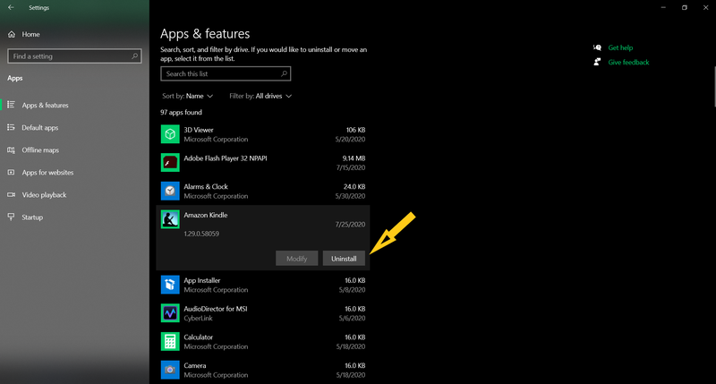 Chọn Settings > Apps để xóa ứng dụng trên Win 10