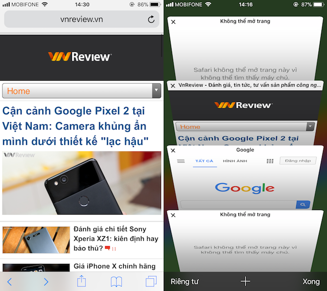 Tương tự như nhiều trình duyệt khác, Safari sẽ hoạt động chậm chạp khi bạn mở nhiều tab (thẻ) nhưng không sử dụng. Để khắc phục, người dùng chỉ cần mở trình duyệt Safari, bấm vào biểu tượng hai ô vuông ở góc phải bên dưới và tắt bớt các tab (thẻ) không cần thiết, việc này sẽ giúp lấy lại dung lượng RAM bị chiếm dụng.