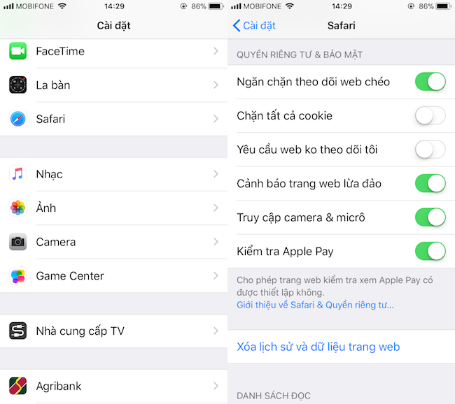 Việc này sẽ giúp tăng tốc Safari nhưng cũng khiến trình duyệt mất thêm một ít thời gian ban đầu để tạo ra bộ đệm. Đầu tiên, bạn hãy truy cập vào phần Settings (cài đặt) trên iPhone, kéo xuống bên dưới và tìm đến mục Safari > Clear History and Website Data (xóa lịch sử và dữ liệu trang web). Lưu ý, quá trình này sẽ không ảnh hưởng đến các trang web yêu thích mà bạn đã đánh dấu (Bookmark).