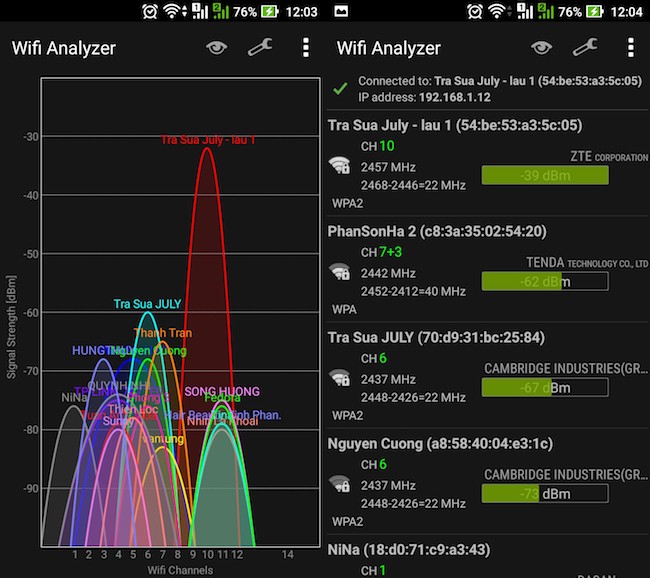 Nếu đang sống tại chung cư, chắc hẳn tín hiệu Wi-Fi nhà bạn sẽ bị ảnh hưởng bởi các hộ lân cận. Để hạn chế tình trạng trên, người dùng có thể cài đặt phần mềm Wifi Analyzer cho smartphone tại địa chỉ https://goo.gl/iMgZn, tương thích với các thiết bị Android 2.3 trở lên. Về cơ bản, ứng dụng sẽ liệt kê thông tin về tín hiệu (signal), kênh (channel) của tất cả các mạng lân cận. Khi hoàn tất, bạn chỉ cần truy cập vào router và chuyển sang kênh kết nối có ít người sử dụng.