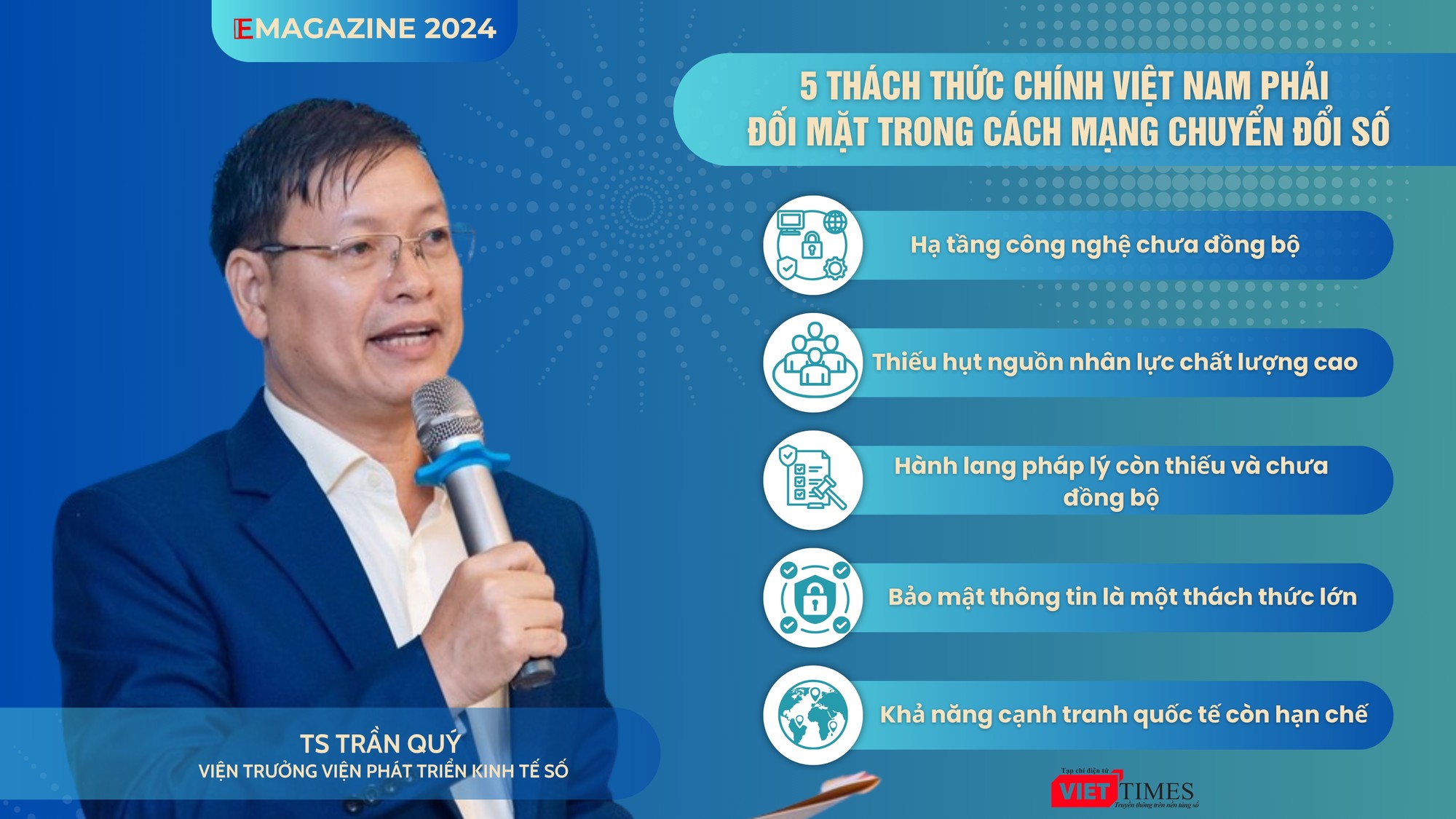 - Các thách thức chính mà Việt Nam phải đối mặt trong quá trình cách mạng chuyển đổi số là gì: hạ tầng công nghệ, nguồn nhân lực hay chính sách pháp luật, bảo mật thông tin, thưa ông?