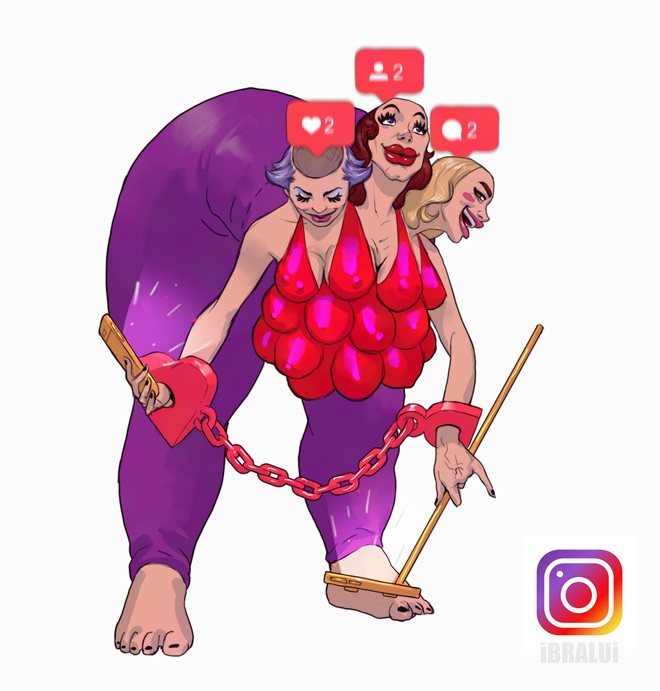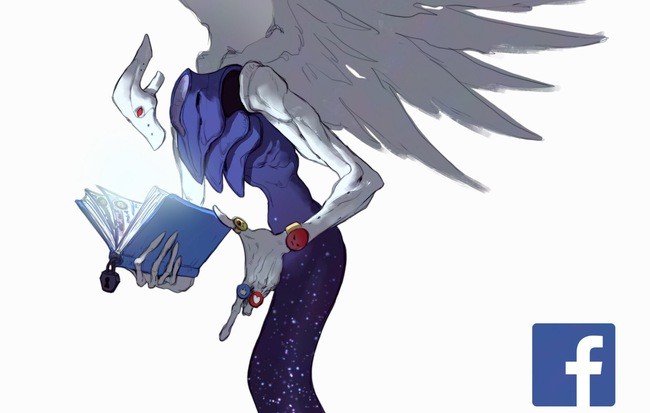 Dù không đính kèm caption nào nhưng nhìn bức ảnh này, chúng ta cũng có thể nhìn ra dụng ý của tác giả. Tạo hình nhân vật cho Facebook thoạt tiên trông giống thiên sứ, nhưng những cánh tay khẳng khiu, cơ thể gầy còm và gương mặt nhọn hốc hác có sừng lại cho thấy xuất thân đen tối ngược lại.