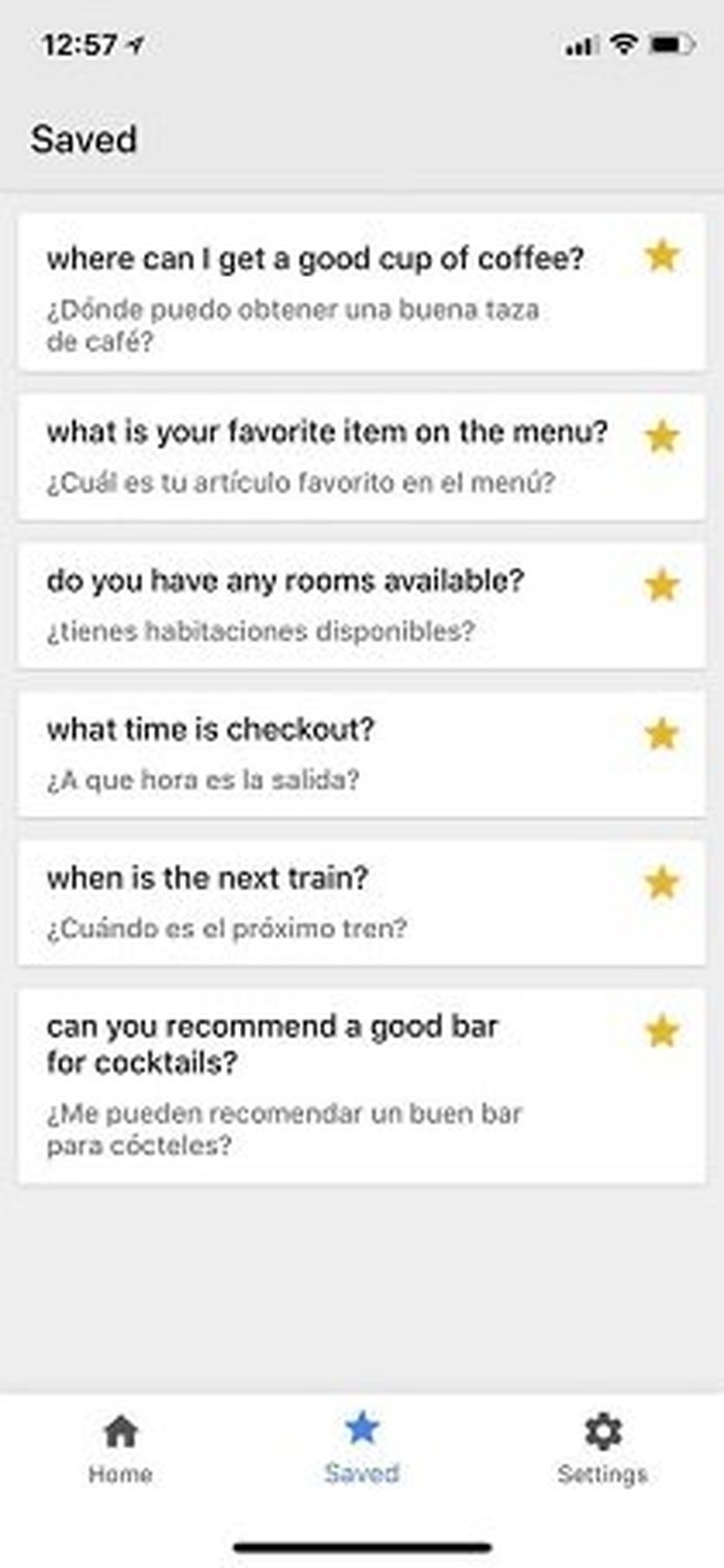 Nếu bạn cần chuyển ngữ một số từ và cụm từ liên tục, bạn có thể lưu chúng lại để lần sau sử dụng.. Hãy nhấn vào biểu tượng ngôi sao bên cạnh một kết quả phiên dịch và nó sẽ được lưu vào danh sách Lưu. Để xem lại các nội dung đã lưu, nhấn vào nút Lưu ở dưới cuối màn hình.