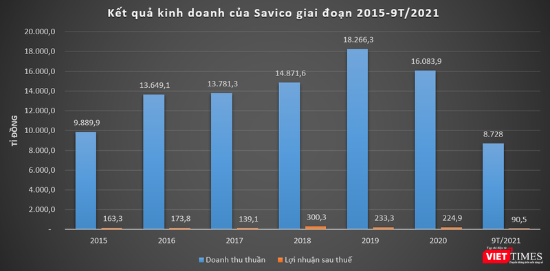 Lũy kế 9 tháng đầu năm 2021, Savico ghi nhận doanh thu thuần đạt 8.728 tỉ đồng, giảm 14% so với cùng kỳ năm trước. Lợi nhuận sau thuế lũy kế đạt 90,5 tỉ đồng, tương đương cùng kỳ năm 2020.