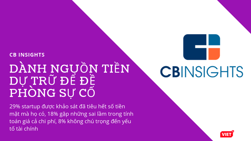 Hãng CB Insights (Mỹ) đã khảo sát startup thất bại và nhận ra rằng một trong số các nguyên nhân là họ đã không dự trữ một khoản tiền để đề phòng sự cố. 29% startup được khảo sát đã tiêu hết số tiền mặt mà họ có, 18% gặp những sai lầm trong tính toán giá cả chi phí, 8% không chú trọng đến yếu tố tài chính. Đa phần các startup thất bại do không có sự “nhìn xa trông rộng”, không có sự chuẩn bị trước cho những rủi ro.