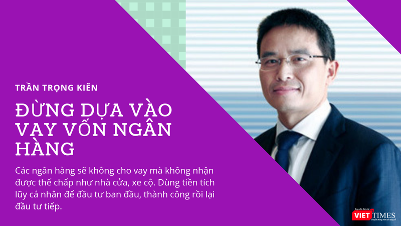 Nhiều người khi mới khởi nghiệp nghĩ rằng mình có thể trình bày ý tưởng, sản phẩm của mình với ngân hàng để vay tiền, nhưng các ngân hàng sẽ không cho vay mà không nhận được thế chấp. Ông Trần Trọng Kiên, CEO tập đoàn Thiên Minh chia sẻ rằng mình đã tích cóp được 2.000 USD để đầu tư khởi nghiệp, sau đó tích cóp tiếp để phát triển, để đầu tư tiếp chứ không dùng nguồn vốn ngân hàng. Ông Kiên cũng chia sẻ rằng số tiền đầu tư ban đầu để khởi nghiệp chắc chắn sẽ mất, vì vậy đừng tạo gánh nặng cho mình bằng việc vay ngân hàng.