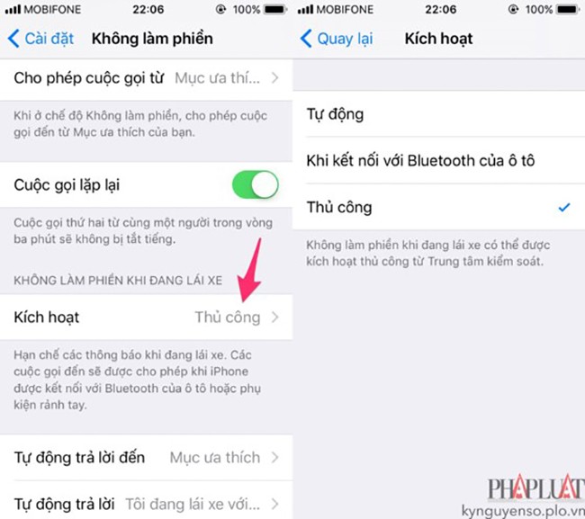 - Do Not Disturb While Driving (không làm phiền khi đang lái xe) - Đây là một tính năng khá hữu ích đối với những ai thường xuyên đi du lịch hoặc phải lái xe đường dài. Bạn có thể kích hoạt tùy chọn này trong phần Settings (cài đặt) > Do Not Disturb (không làm phiền).