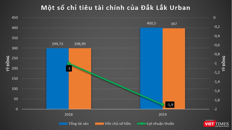 Tính đến cuối năm 2019, tổng tài sản của Đắk Lắk Urban đạt 400,5 tỷ đồng, tăng 33,6% so với thời điểm đầu năm; vốn chủ sở hữu tăng gần 100 tỷ đồng lên mức 397 tỷ đồng.
