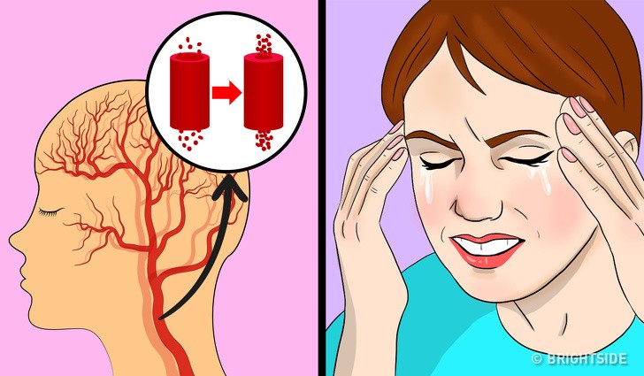Khi tiêu thụ quá nhiều natri trong muối sẽ làm tăng quá trình áp lực máu. Sự giãn nở của các mạch máu này gây ra huyết áp cao và kết quả là có thể gây đau đầu nghiêm trọng.