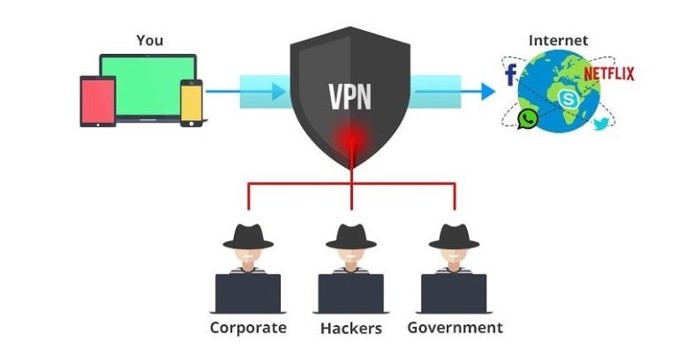 VPN (Virtual private network - mạng riêng ảo) sẽ đảm bảo mọi giao dịch của bạn luôn được an toàn khi sử dụng WiFi công cộng, bởi lẽ mọi thông tin truyền từ thiết bị của bạn đến máy chủ sẽ được thông qua một máy chủ khác, giúp mã hóa mọi thứ và tránh được con mắt tò mò của người khác.