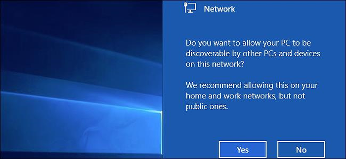Khi kết nối vào một mạng mới, Windows sẽ hiển thị 3 tùy chọn gồm Home, Work và Public. Nếu bạn chọn Home hay Work, chức năng chia sẻ file sẽ tự động được bật vì Windows cho rằng bạn sẽ cần chia sẻ dữ liệu với ai đó.