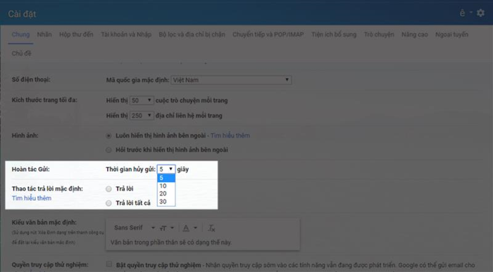 3. Đặt hoàn tác gửi tới 30 giây