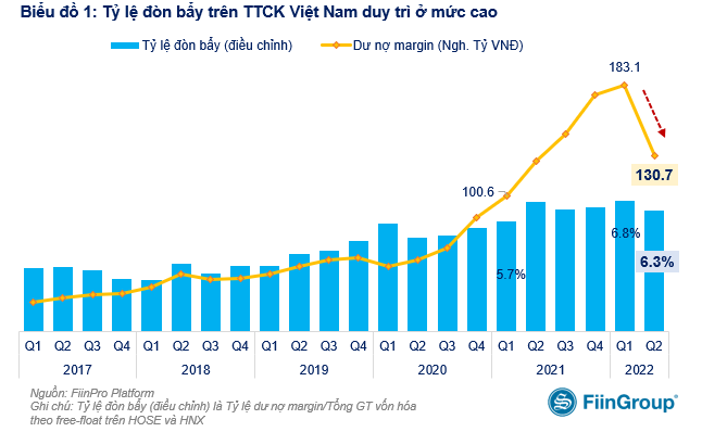 Theo FiinTrade, sự sụt giảm này chủ yếu do nhu cầu sử dụng và sức mua margin của nhà đầu tư giảm khi giá cổ phiếu đi xuống khi chỉ số VN-Index đã giảm 22% kể từ đỉnh lịch sử 1.528,6 điểm (được thiết lập vào ngày 6/1/2022).