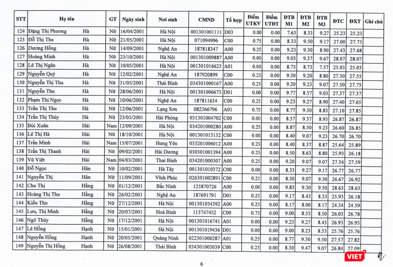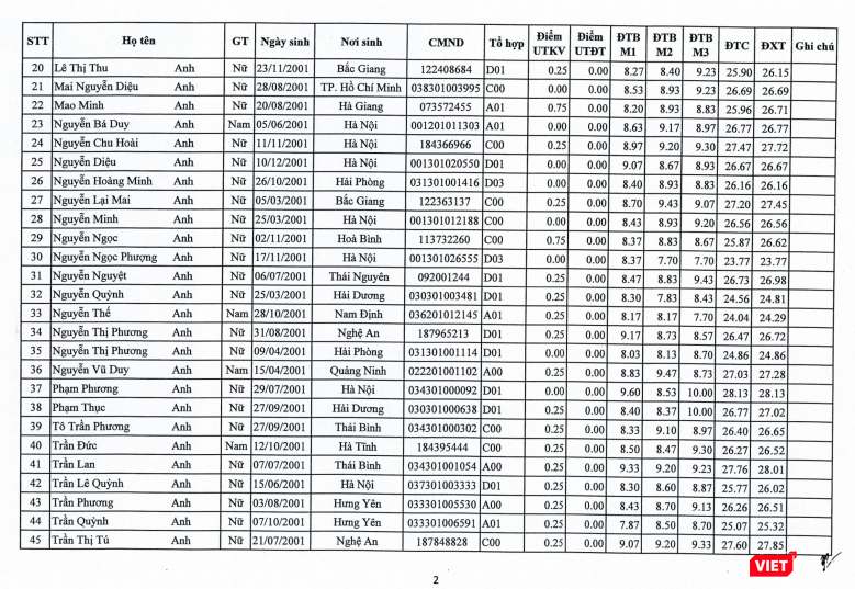 Dưới đây là danh sách thí sinh trúng tuyển hệ ĐH chính quy khóa 44 năm 2019.