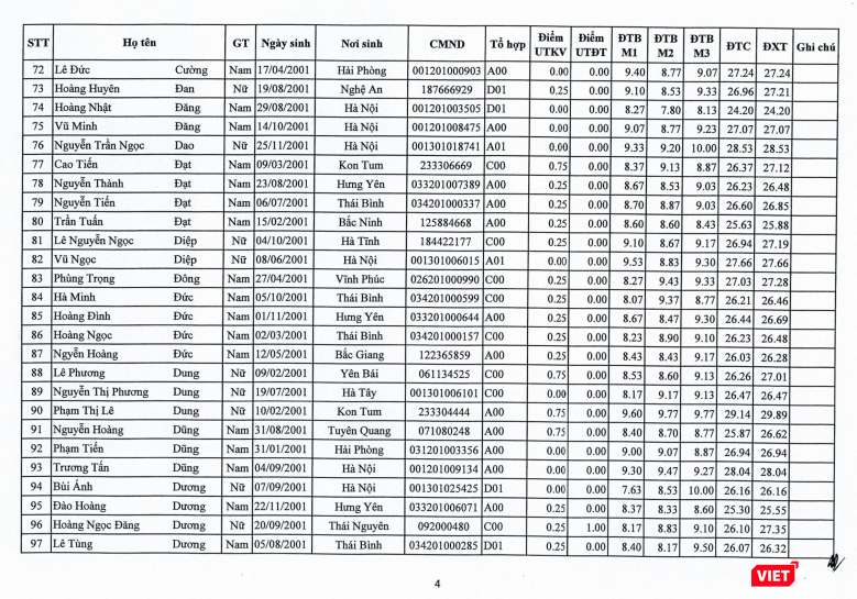 Trong đó, 705 thí sinh trúng tuyển là học sinh các trường THPT chuyên, năng khiếu quốc gia, trường THPT chuyên/năng khiếu cấp tỉnh/thành phố trực thuộc trung ương, học sinh của các trường THPT trọng điểm quốc gia chất lượng cao; 272 thí sinh trúng tuyển là học sinh các trường THPT khác.