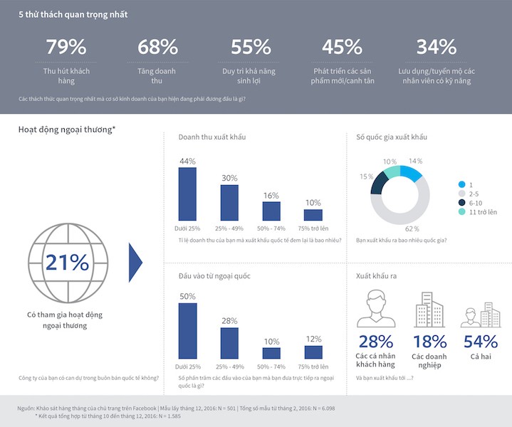 Cuộc khảo sát này bao gồm nhận thức về việc các doanh nghiệp tự tin hơn nếu họ tham gia giao thương trên thương trường quốc tế và cách mà các doanh nghiệp đang tăng cường sử dụng các công cụ số khi thực hiện các hoạt động giao thương quốc tế.