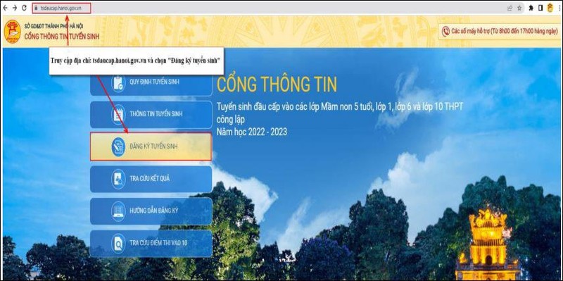 Bước 2: Truy cập vào cổng thông tin tuyển sinh tại địa chỉ tsdaucap.hanoi.gov.vn