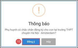 Bước 8 : Xác nhận “Đồng ý” để hoàn thành thao tác đăng ký nguyện vọng.