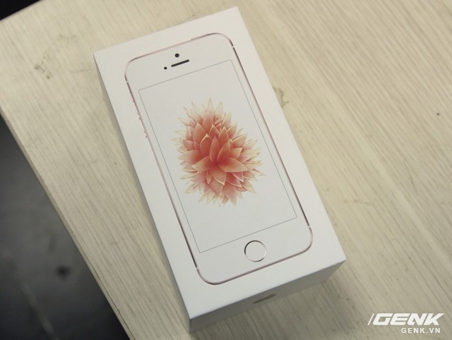 Hộp đựng dành cho iPhone SE có phong cách thiết kế tương tự iPhone 6s và iPhone 6s Plus trong năm ngoái. Vỏ hộp màu trắng, in rõ tên sản phẩm. Nhưng điểm khác biệt nằm ở họa tiết in trên vỏ hộp. Thay vì sử dụng hình ảnh chú cá chọi, vỏ hộp iPhone SE có in hình một bông hoa.