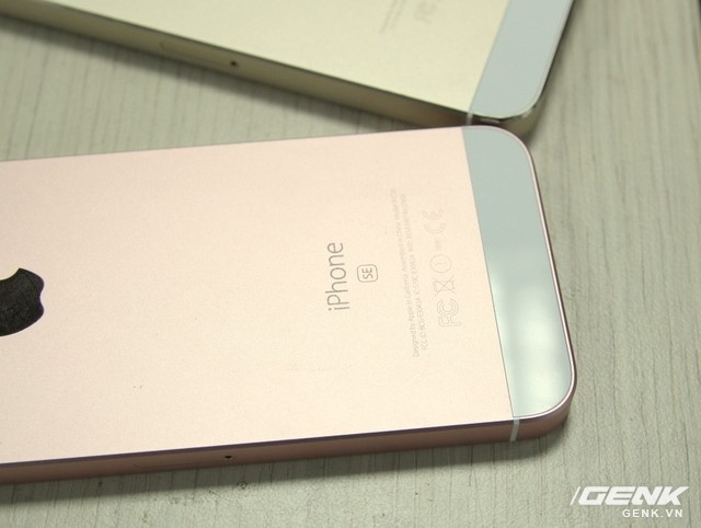 Bên cạnh yếu tố màu sắc, chúng ta cũng có thể dựa vào chi tiết trên iPhone SE để phân biệt máy với người tiền nhiệm iPhone 5s. Cụ thể, mặt lưng của iPhone SE có in rõ dòng chữ iPhone SE, với chữ SE được làm khá nổi bật. Trong khi đó, trên iPhone 5s chúng ta chỉ quan sát thấy chữ iPhone mà thôi.
