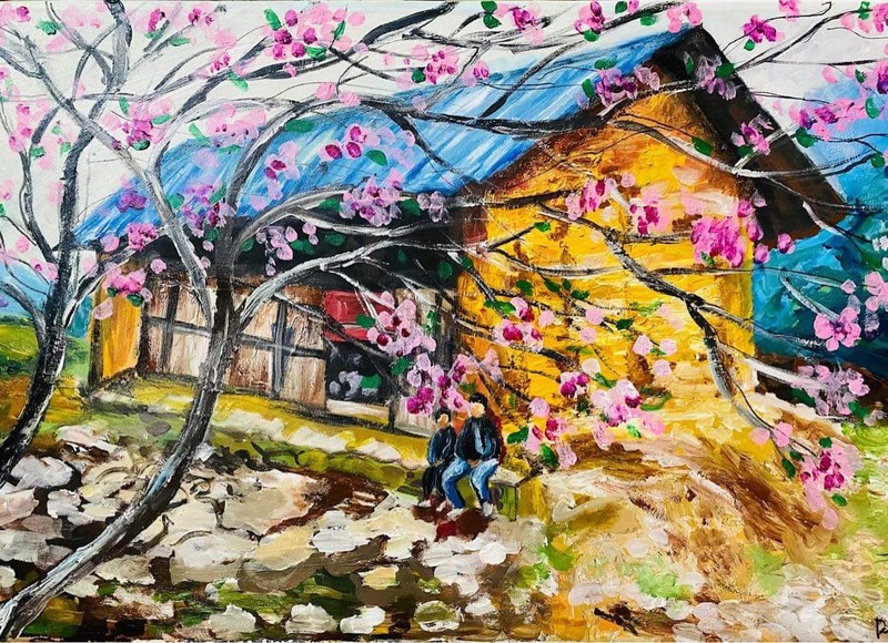Mỗi tác phẩm trong triển lãm là một câu chuyện thú vị được thể hiện bằng màu vẽ. Các bức tranh mang nhiều phong cách, là những hình ảnh đời thường quen thuộc, cũng có khi là một nét tường rêu phủ trong con ngõ vắng, hay một chiếc xe đạp cũ chở những đóa hoa xuân vào phố, lúc lại là hình ảnh phố xá tấp nập ngược xuôi mưu sinh, là những cánh đồng đầy hoa tím nở trên triền núi, dọc thung lũng Mường Hoa.