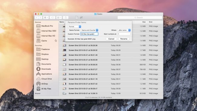 Trước khi phiên bản Yosemite cập bến, đổi tên nhiều file cùng lúc đòi hỏi bạn phải sử dụng một phần mềm thứ 3 hoặc tự viết script của mình lên Automator hoặc Applescript. Tuy nhiên bây giờ bạn đã có thể chỉ cần lựa chọn một nhóm file và chọn “rename” bằng việc nhấp chuột phải.