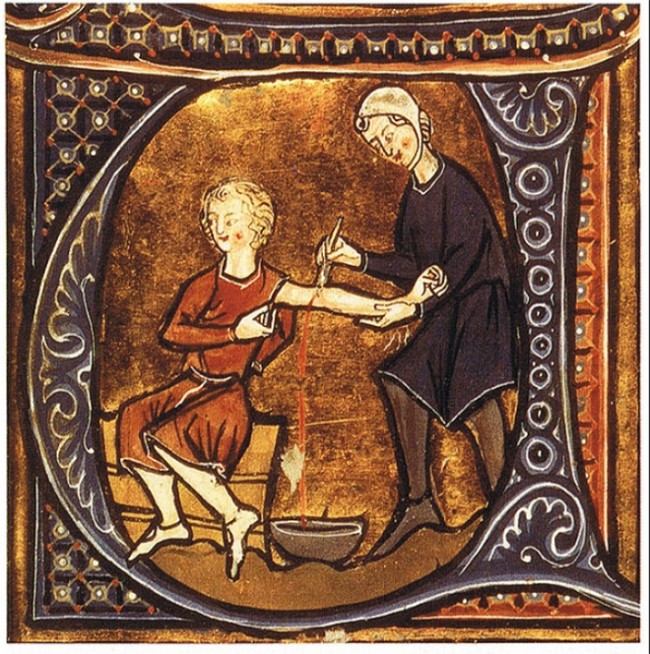 Người ta tin rằng trong máu có chứa "thể dịch xấu", mà phải được đào thải ra ngoài thì bệnh nhân mới khỏi bệnh. Trong thời kỳ trung cổ, thợ cắt tóc là người lấy máu. Phương pháp này đã phổ biến đến tận thế kỷ 19. Ngay cả George Washington bị viêm amiđan cũng được chữa theo cách này, mặc dù sau đó ông đã chết.