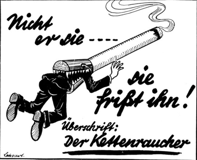 Mặc dù Hitler hút thuốc rất nhiều trong quãng thời gian của tuổi trẻ nhưng hắn ta trở thành người ngăn cấm hút thuốc khi lên nắm quyền lực. Hitler coi thuốc lá là một sự lãng phí tiền bạc và thậm chí bắt đầu một chiến dịch chống hút thuốc bằng cách cấm hành động này trên các phương tiện công cộng.