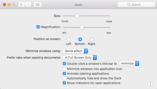 Đối với MacBook, bạn vào System Preferences > Dock và tắt bớt các hiệu ứng phóng đại, ảnh động trong quá trình sử dụng.