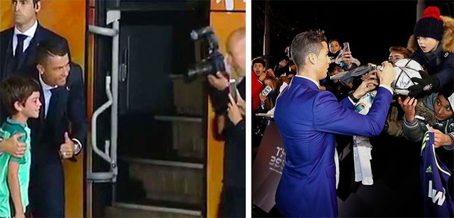 Không dễ dàng dành một lượng thời gian thích hợp cho mỗi người hâm mộ khi bạn có cả “đội quân”. Vì vậy, một số người trong số họ sẽ cảm thấy buồn hoặc thất vọng. Tuy nhiên, fan hâm mộ của Ronaldo lại không cảm thấy như vậy. Ngay cả khi đến muộn tại FIFA World Cup 2018, anh ấy vẫn dành thời gian rời đến bến xe buýt và an ủi một fan hâm mộ nhí đang khóc. Anh ôm cậu bé và tặng chữ ký.