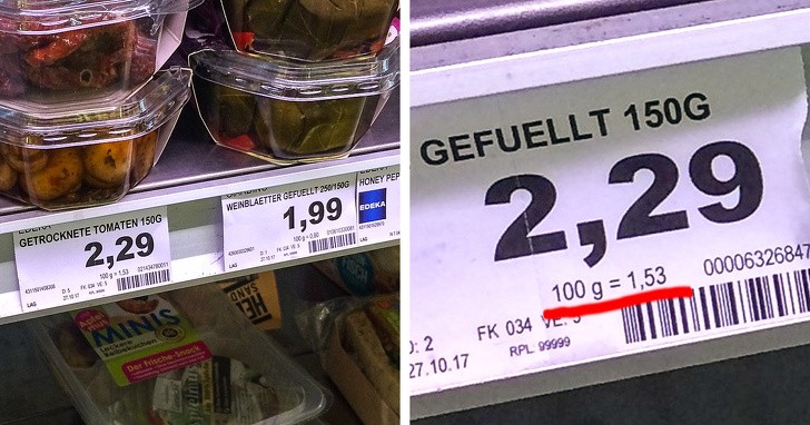 Điều đầu tiên mà bạn có thể ngạc nhiên là tất cả giá cả đều được đề cập ở mức 1 kg, 100 g và 1 lít. Bạn có thể tìm thấy chi phí của một sản phẩm trên 1 kg (100 g hoặc 1 lít), ngay dưới giá chính. Điều này giúp khách hàng so sánh và chọn một sản phẩm ở mức giá có lợi nhất cho họ.