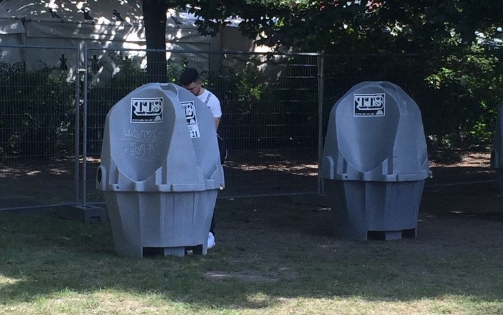 Bạn có thể nhìn thấy những nhà vệ sinh như trên ở nhiều sự kiện. Những nhà vệ sinh này được sử dụng miễn phí còn nếu bạn đi nhà vệ sinh riêng, bạn phải mất € 0.75 (hơn 20.000 VND). Đáng tiếc là nhà vệ sinh này chỉ dành cho đàn ông.