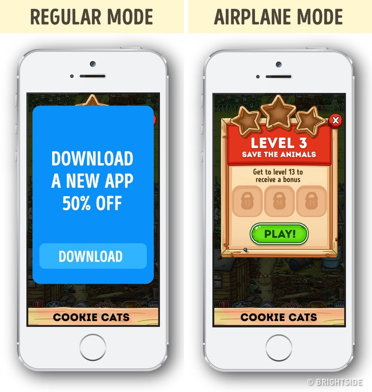 Nếu bạn sử dụng các ứng dụng miễn phí, bạn có thể thường xuyên bị quấy nhiễu bởi các quảng cáo xuất hiện trên màn hình. Hãy chuyển sang chế độ trên máy bay và thỏa thích chơi các trò chơi yêu thích mà không lo quảng cáo nữa.