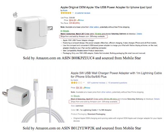 Trên Amazon, những sản phẩm này đều được "đội lốt" dưới người bán hàng là Apple, ảnh minh họa cho chúng cũng được lấy từ website của Apple, nhưng thực tế nguồn gốc lại đến từ Mobile Star và các công ty khác chứ không phải Apple, do đó rất khó để phân biệt khi chỉ xem thông tin trên mạng.