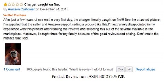 Một nhận xét của người dùng vì mua trúng phụ kiện Apple giả trên Amazon