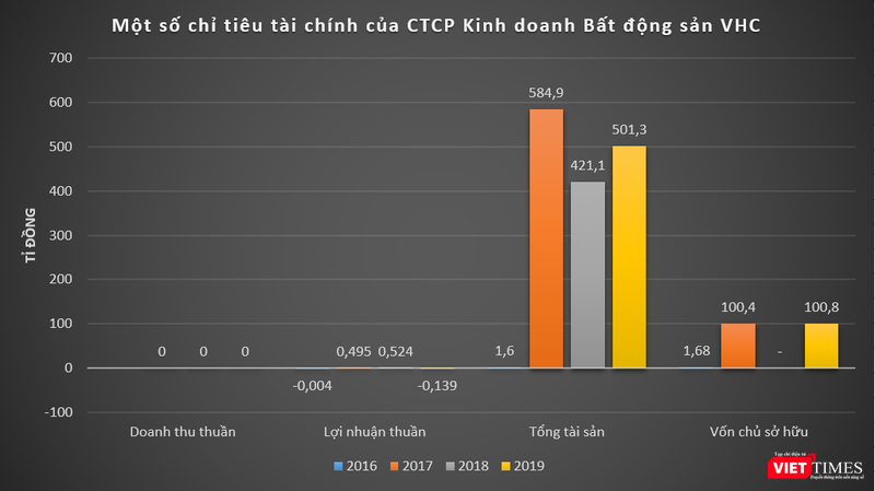 Dữ liệu của VietTimes cho thấy, trong giai đoạn 2016 - 2019, VHC không phát sinh doanh thu. Tuy nhiên, công ty này vẫn báo lãi trong năm 2017 và 2018 với lãi thuần lần lượt ở mức 495 triệu đồng và 524 triệu đồng. Năm 2019, VHC báo lỗ thuần 139 triệu đồng.