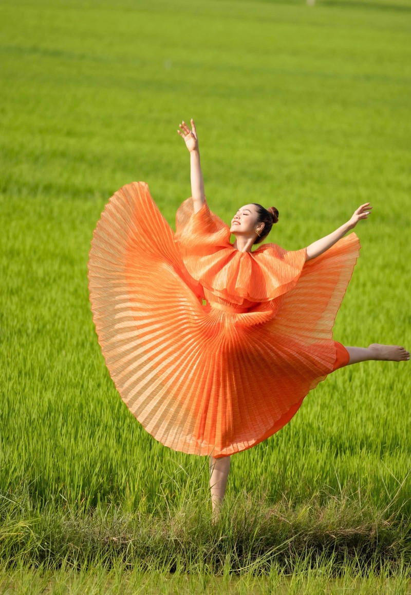 Tại đây, Hoàng My và ê-kíp đã cùng nhau ghi lại nhiều khoảnh khắc đẹp khi nàng hậu diện trên mình thiết kế váy xếp ly bồng bềnh, nữ tính. Nét rạng rỡ của nàng hậu, phong cảnh thanh bình, xanh mát trong loạt ảnh như thôi thúc người xem đến với Tây Ninh.