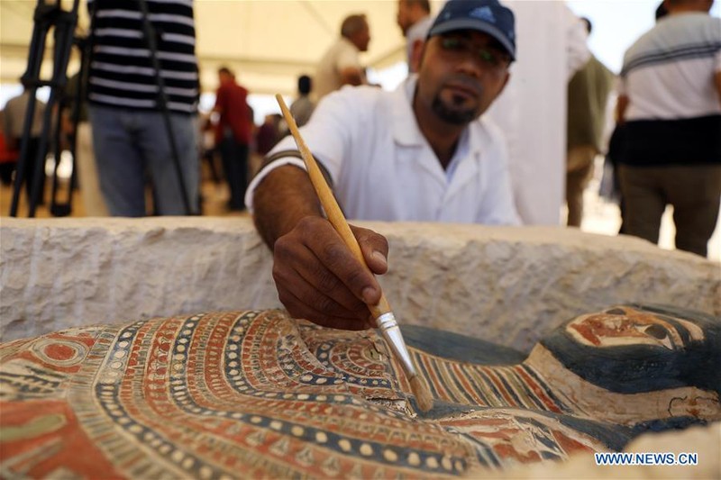 "Bên cạnh bức tường, phái đoàn Ai Cập của Hội đồng Cổ vật Tối cao (SCA) đã tìm thấy một bộ sưu tập sarcophagi bằng đá, đất sét và gỗ với một số trong số họ có xác ướp bên trong", Mostafa Waziri, GIám đốc SCA cho biết.