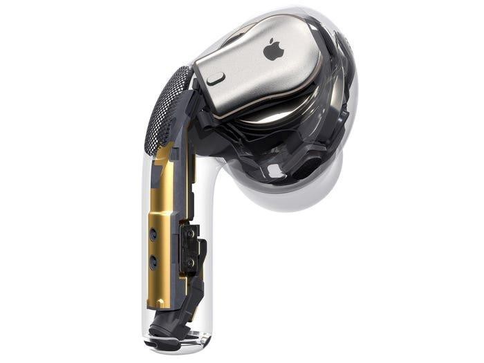 AirPods Pro trang bị tính năng “adaptive EQ” tự động điều chỉnh nhạc theo hình dạng tai để mang lại trải nghiệm nghe nhạc phong phú. AirPods thường không có.