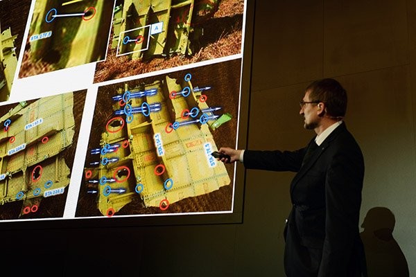 Mảnh vỡ của thử nghiêm so sánh với mảnh máy bay Boeing bị bắn hạ.