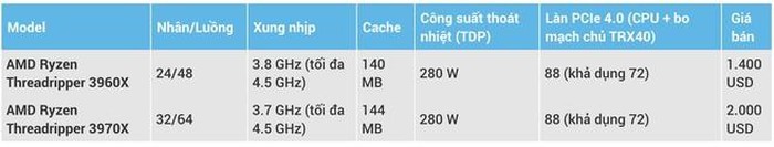Cấu hình cơ bản dòng CPU AMD Threadripper thế hệ thứ 3.