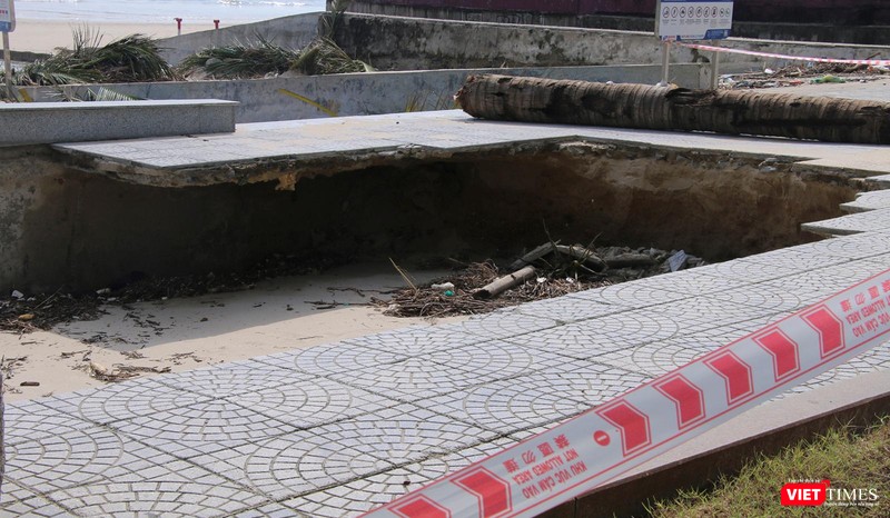 | Sóng đánh xói lở vô tận vỉa hè đường Võ Nguyên Giáp |