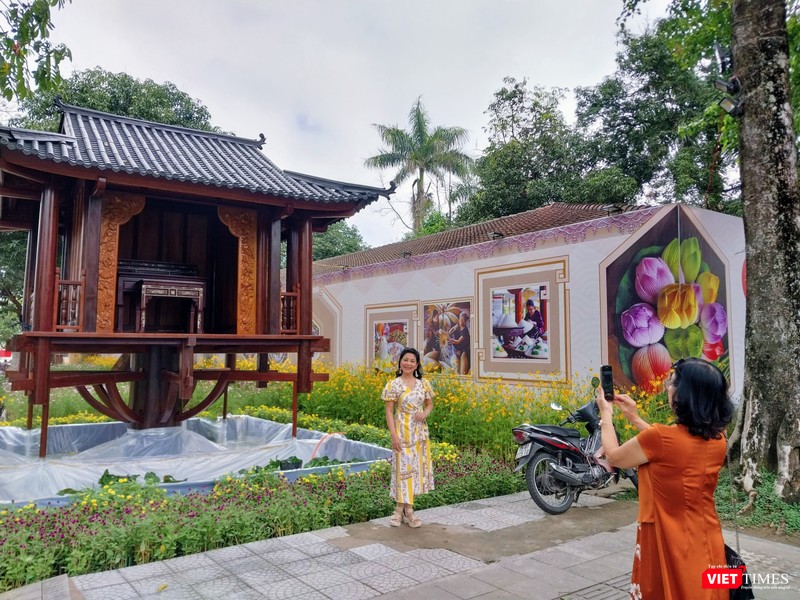 | Người dân và du khách checkin với tiểu cảnh làng ghề |