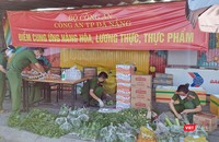 Ở các điểm cung ứng thực phẩm, các chiến sĩ công an vẫn sẵn sàng nhu yếu phẩm phục vụ người dân