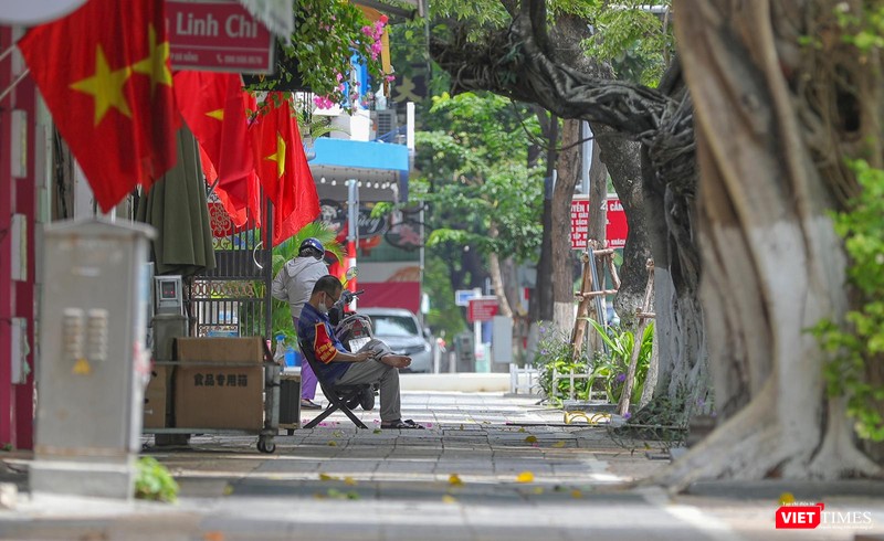 Vỉa hè đường Bạch Đằng tromg sáng ngày 2/9 không một bóng người